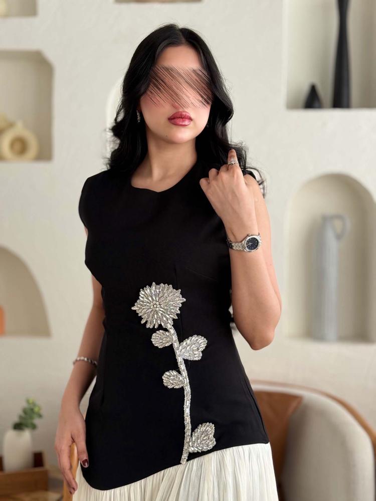 استمتعي بإطلالة أنثوية ساحرة مع هذا الفستان العصري الذي يجمع بين الأناقة والبساطة في تناغم مثالي. يتميز التوب بتصميم بدون أكمام وقصة منسدلة مزينة بتطريز زهري فاخر يضيف لمسة من الرقي والفخامة.