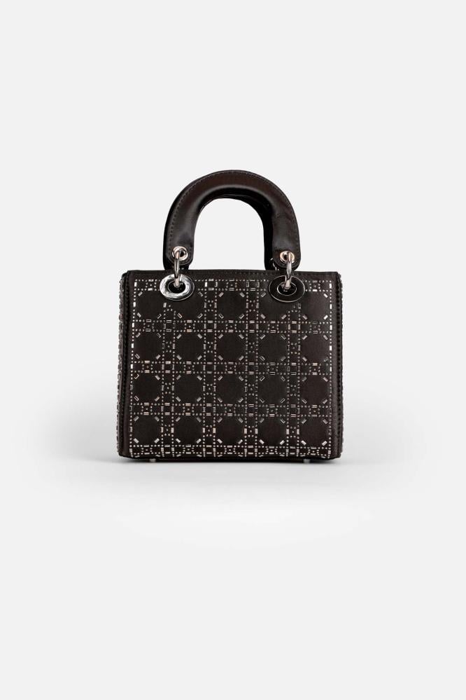 شنطة سهرة بتصميم عصري لافت، تأتي بلون أسود لامع مع نقشة ليزر هندسية أنيقة تضيف لمسة فنية ساحرة. مزودة بمقبض علوي دائري ولمسات معدنية فاخرة، لتكون القطعة المثالية لإطلالة مسائية راقية لا تُنسى.