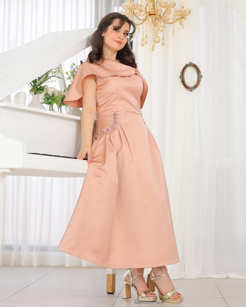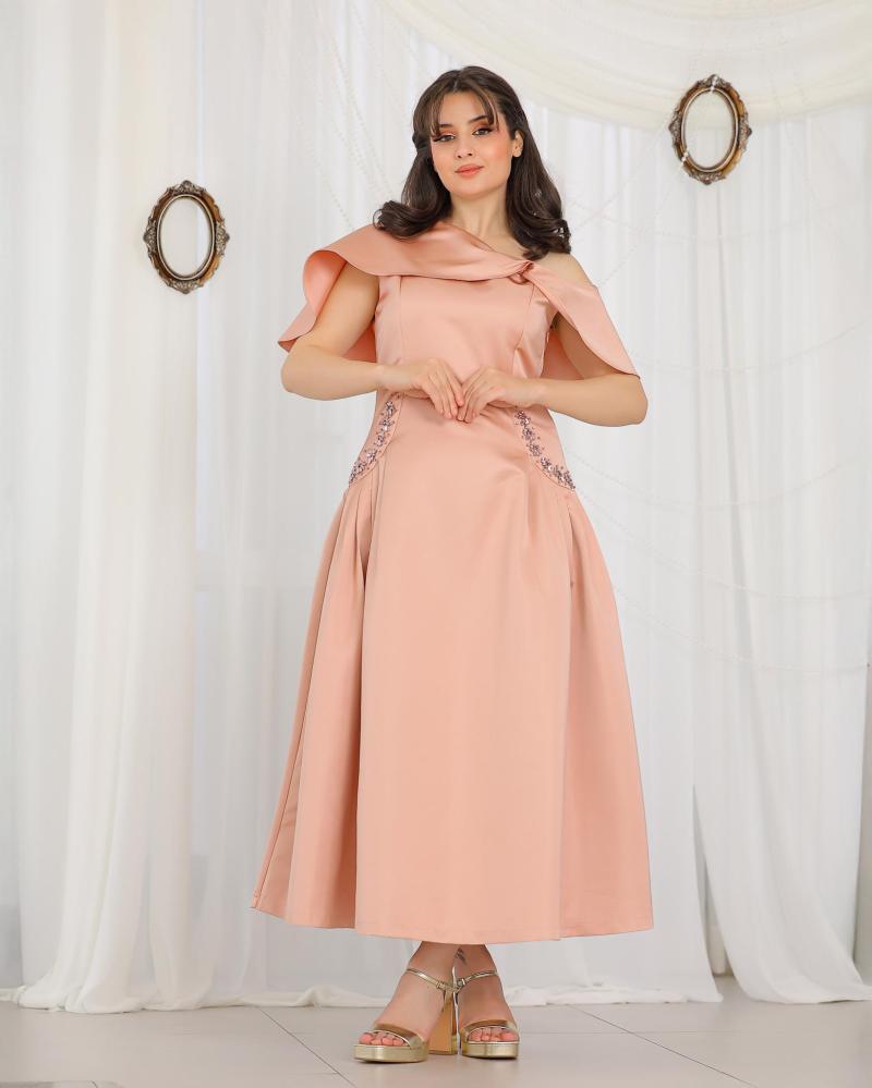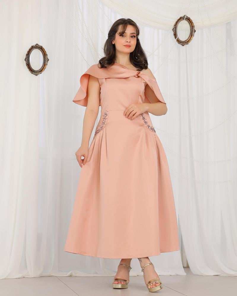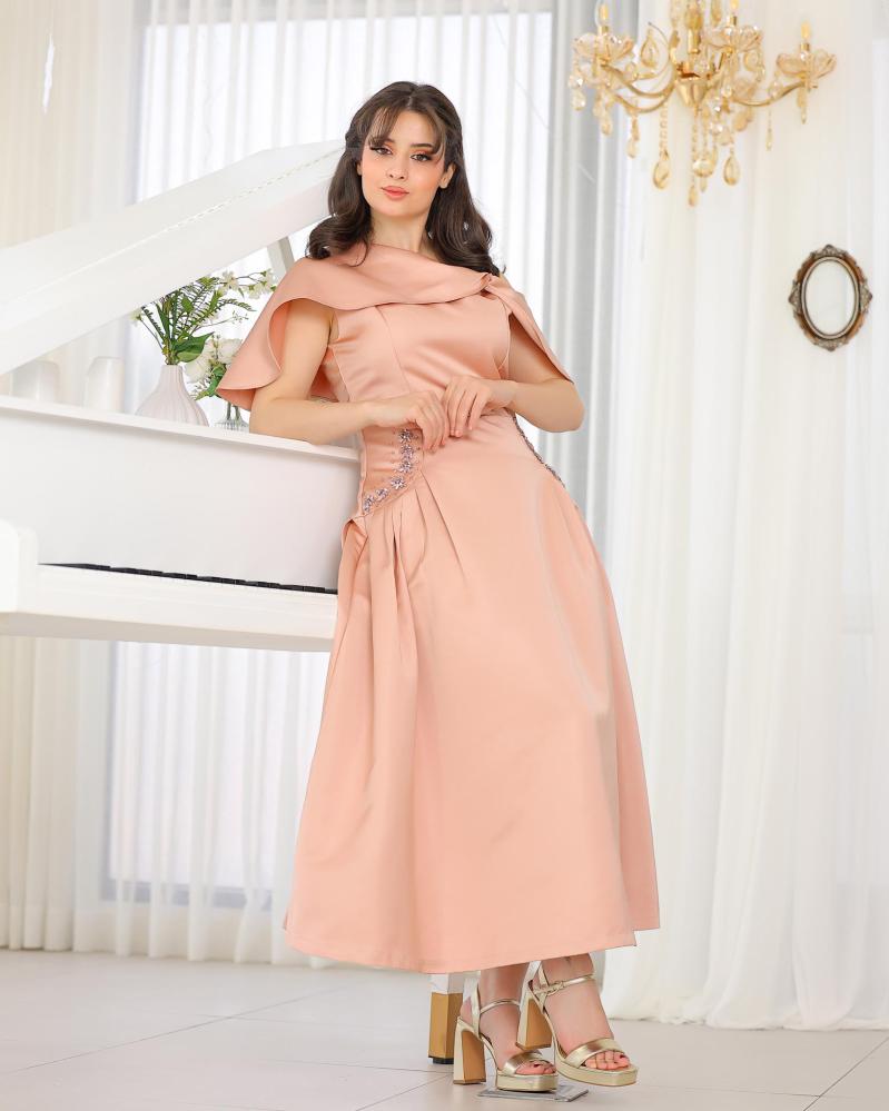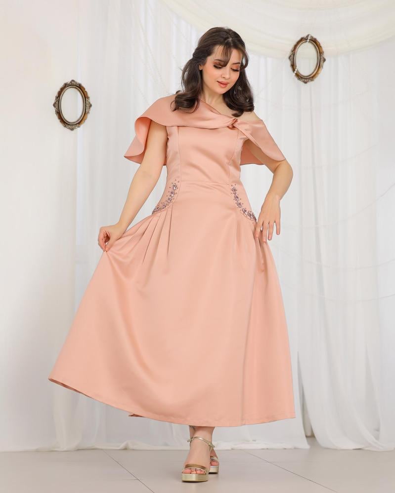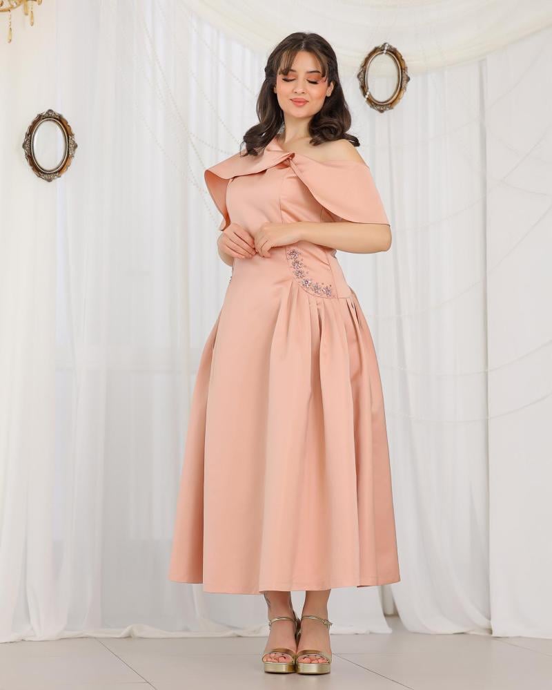 يتميّز بقصّة أنيقة تبرز الخصر بلمسة فاخرة من إكسسوار سواروفسكي المتلألئ، مما يضيف لمسة أنيقة دون مبالغة.