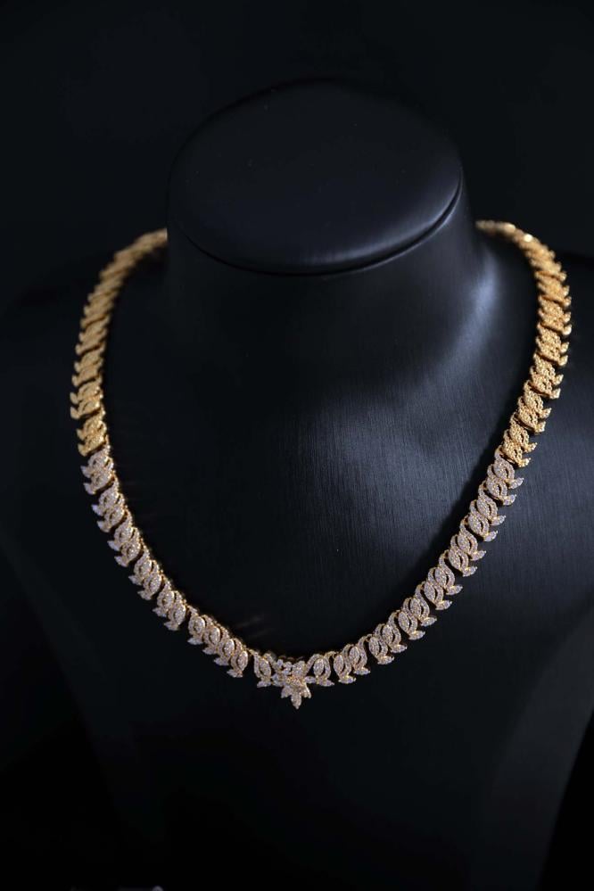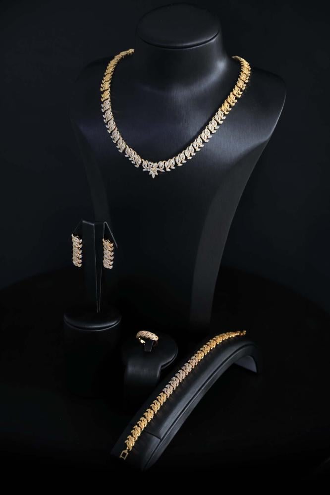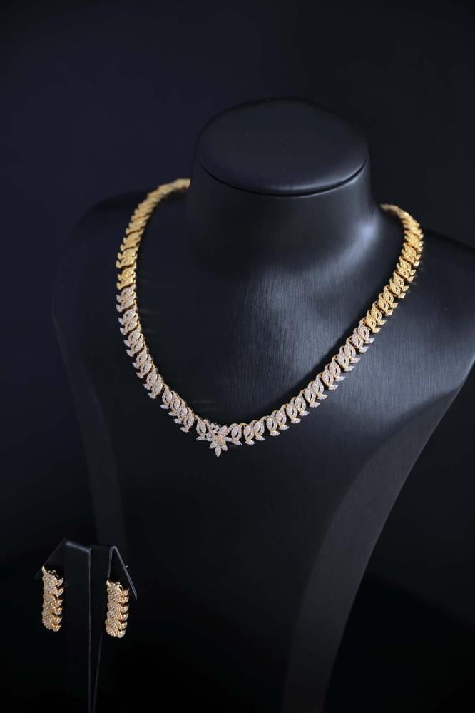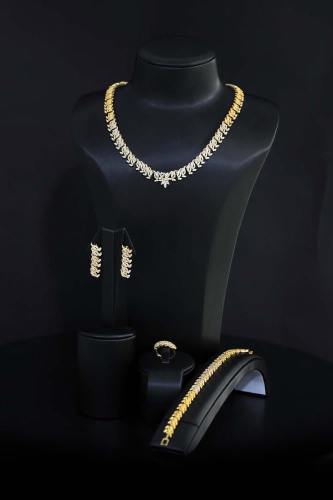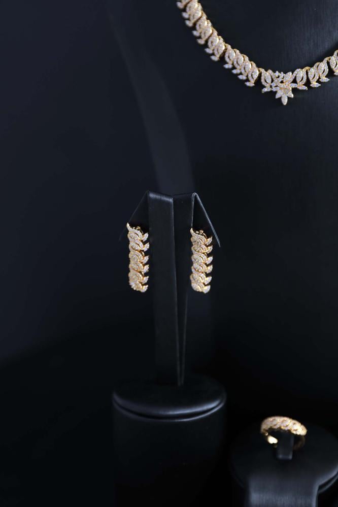 طقم إكسسوارات نسائي ذهبي فاخر بفصوص زركون