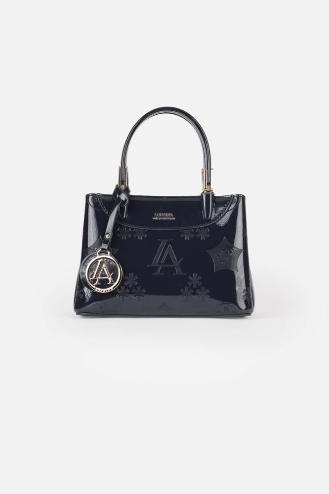 تألقي بإطلالة راقية مع شنطة Loraina المصممة بأسلوب كلاسيكي أنيق. تأتي باللون الكحلي اللامع مع خامة جلد فاخرة تضيف لمسة أنثوية جذابة. مزودة بحلية معدنية دائرية بشعار الماركة ولمسات ذهبية أنيقة، وتتميز بمقبض يد مريح وسحاب علوي للإغلاق. خيار مثالي لإطلالة أنيقة سواء في المناسبات أو الاستخدام اليومي.