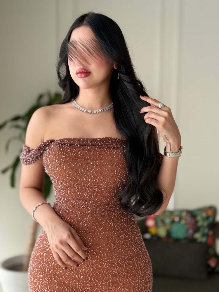 تألقي بإطلالة ساحرة في مناسبتك القادمة مع هذا الفستان الأنيق بقصة أوف شولدر تضيف لمسة أنثوية راقية. يتميز بقماش لامع فاخر ينعكس برقي على الإضاءة، مع قصة ضيقة تبرز القوام بإحساس أنثوي أنيق.