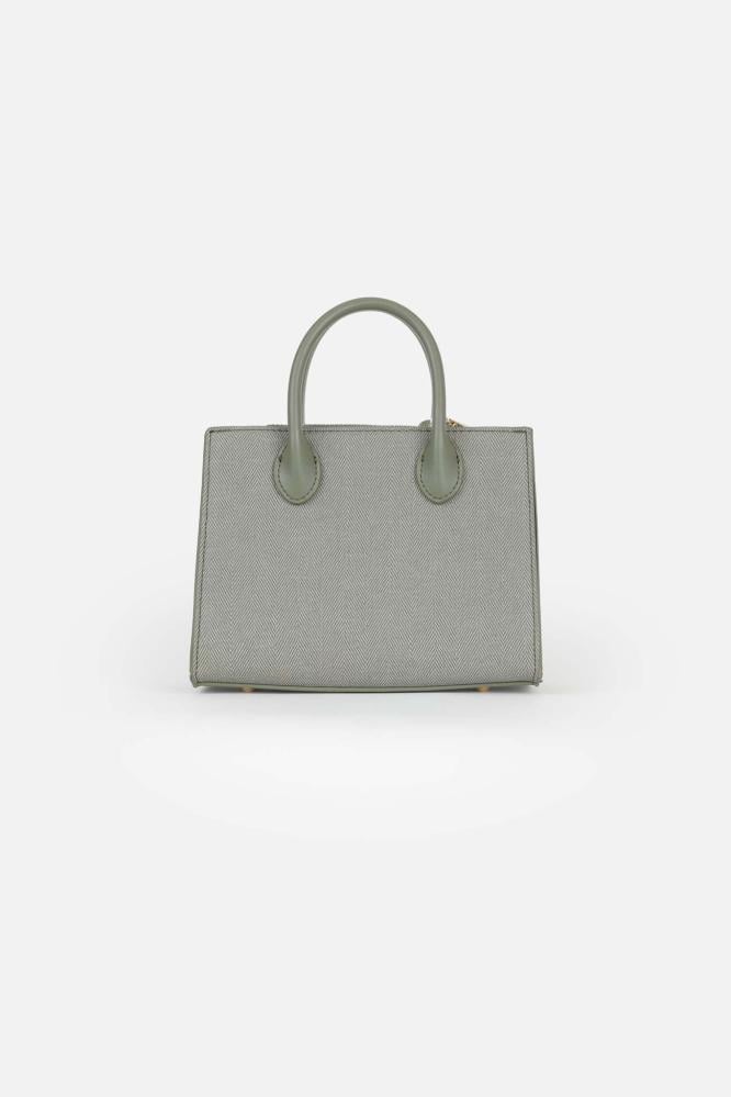 تألقي بإطلالة تجمع بين الرقي والعملية مع شنطة كريسبلا الفاخرة باللون الزيتي. تصميم متوسط الحجم يجمع بين النعومة والصلابة، مصنوع من الجلد النباتي عالي الجودة بنقشة هيرنج بون تضيف لمسة كلاسيكية راقية.